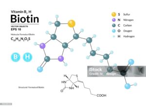البيوتين هو فيتامين قابل للذوبان في الماء، يلعب دوراً أساسياً في عملية التمثيل الغذائي للكربوهيدرات، الدهون والبروتينات. كما أنه يساهم في إنتاج الكيراتين، وهو البروتين الرئيسي المكون للشعر والأظافر وطبقة الجلد الخارجية.